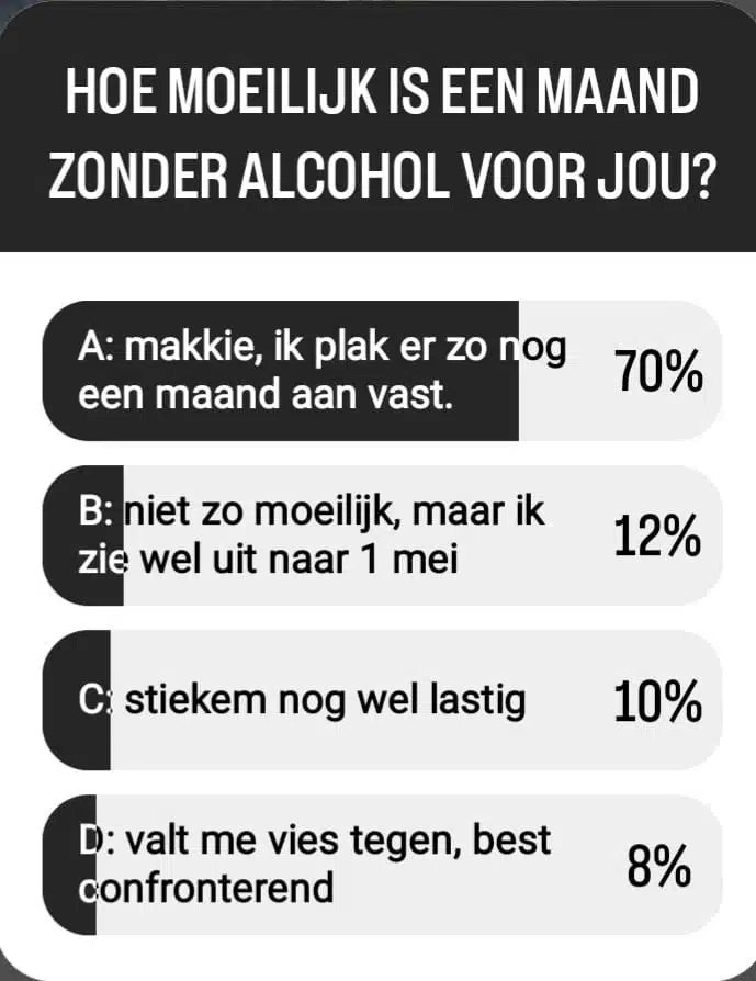 Mijn verwachting was dat de meerderheid het stiekem nog wel lastig zou vinden. We weten dat alcohol morrelt aan onze slaap en dat we een dag ná wat biertjes minder fit zijn dan na een avondje gemberthee. Genoeg voordelen om niet te drinken.