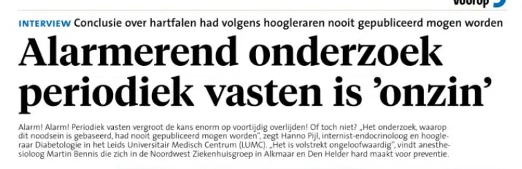 Er zijn wetenschappers die periodiek vasten neerzetten als hét geneesmiddel van de toekomst. Waarom de Amerikaanse hartstichting het alarmerende bericht plaatste, weten we niet. Is het een stagiair die als opdracht had om veel bezoekers op de website te krijgen en was dit een mooie clickbait? Of is er uitgebreid over vergaderd en lazen de Amerikanen het onderzoek nog niet helemaal?