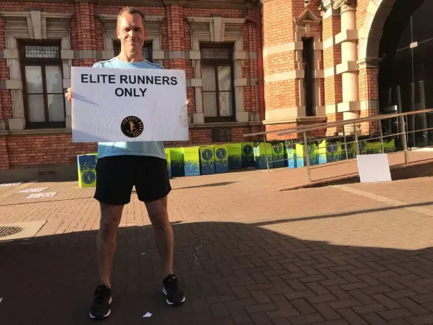 Ervaren lopers met een groen nummer (tenminste tien keer op tijd gefinished) showen ervaring in precies op tijd binnenkomen.