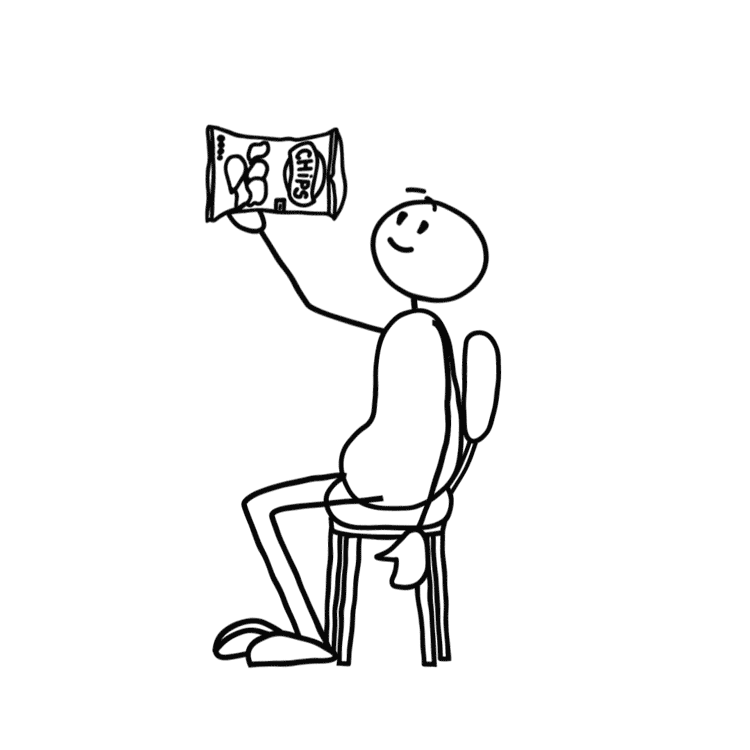 Het liefst gaat hij op de bank zitten; tv kijken met een zakje chips. Lekker niets doen.