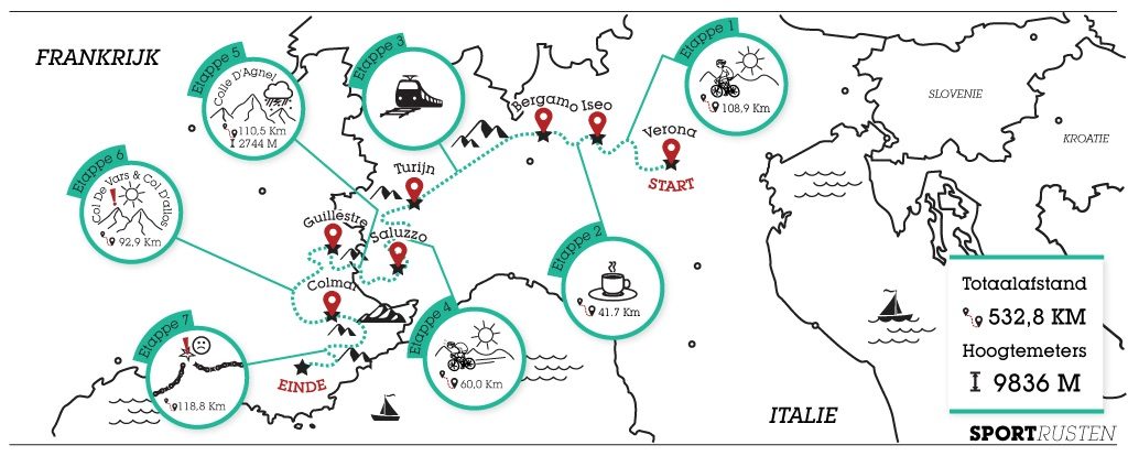 532,8 fietskilometers en 9836 hoogtemeters verderop.