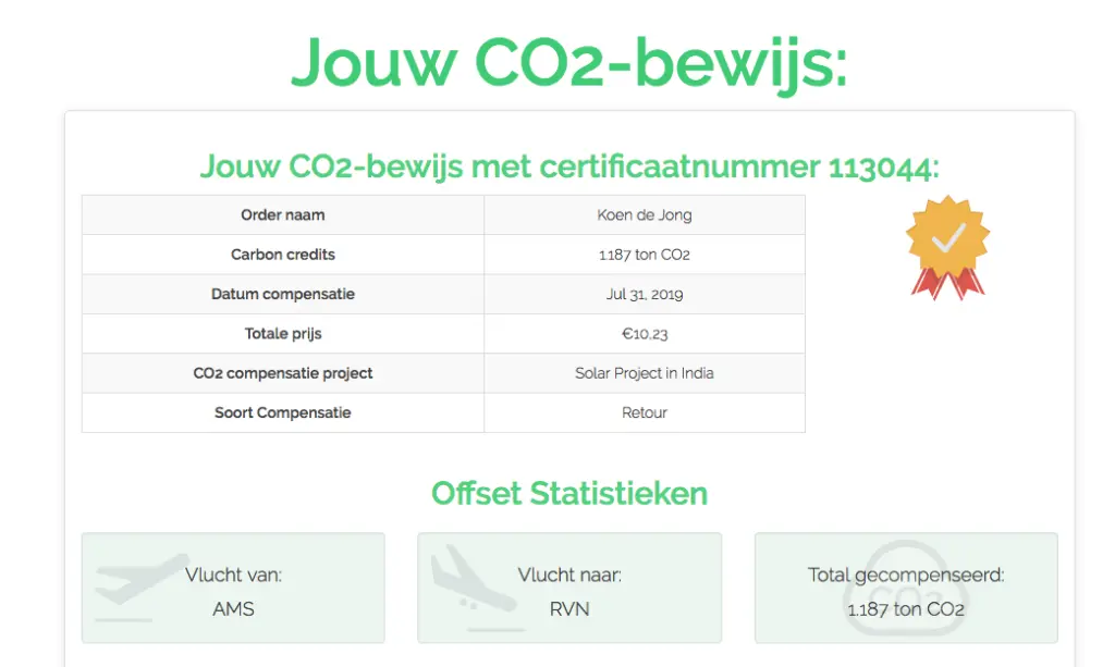 (Echt compenseren zou je het pas als je iemand anders betaalde om een geboekte vliegreis NIET te maken. En dan nog is vliegen veel te goedkoop.)