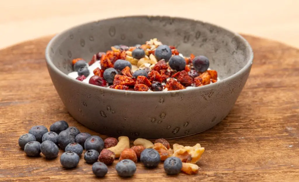 Voeg eventueel blauwe bessen toe.