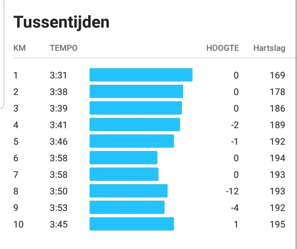 Kort daarvoor kwamen we met een klein cluppie samen om het strijdplan voor de 10K door te nemen. Een strijdplan voor een PR. Ik had benadrukt dat veel lopers te rustig starten voor een 10K. Het is best een eind, dus je kan maar beter rustig starten en daarna versnellen.