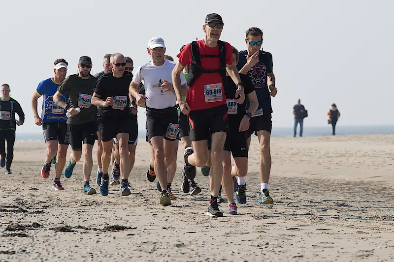 Tim van der Veer liep vorige week al een 55 kilometer en is in voorbereiding op een extreem zware ultra in juni, dus hij wilde na het strand sowieso rustig naar huis hobbelen.