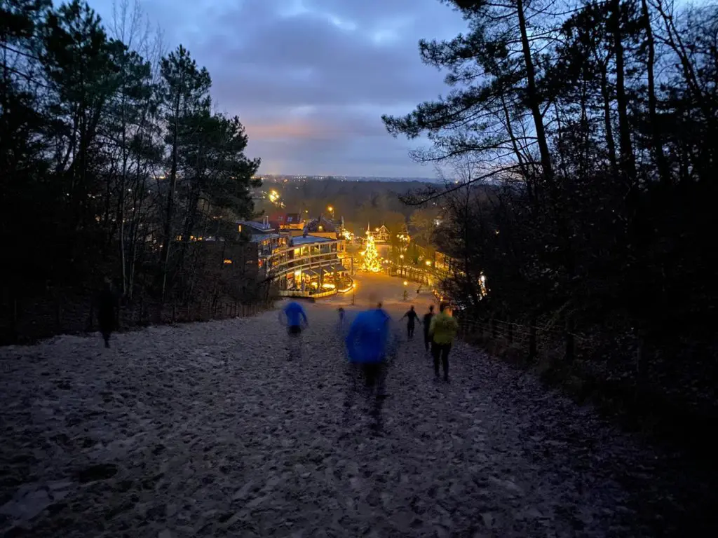 Na precies 4 uur zijn we weer bij het klimduin. De klok slaat acht keer. We laten ons vallen naar de kerstboom. High fives. Knuffels. Koffie.