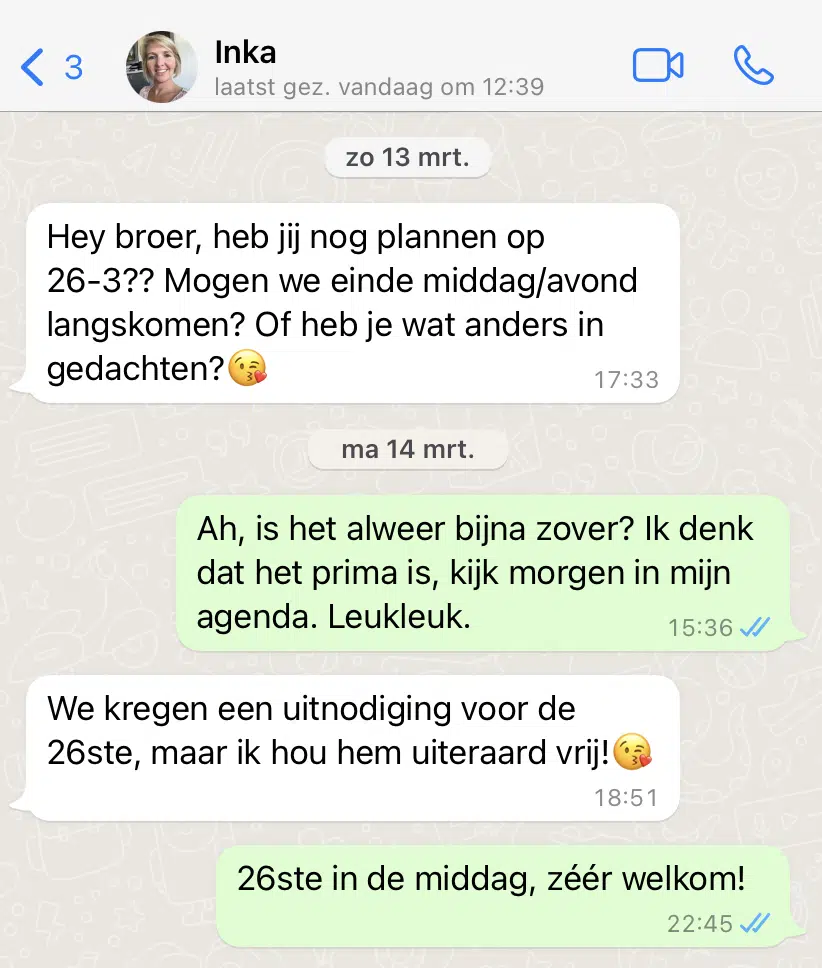 Normaal vier ik mijn verjaardag nooit. Mijn zus stuurt meestal op 24 maart een bericht om te laten weten hoe laat ze komt. Oh ja, die verjaardag – denk ik dan, en dan app ik mijn ouders en die komen dan ook. Dit jaar stuurde mijn zus al op 13 maart een appje.
