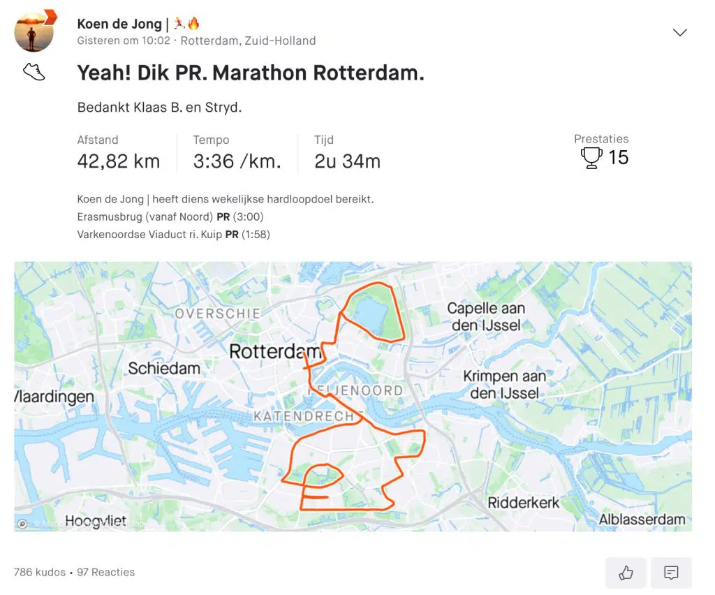 En nee ik heb niet de marathon gelopen in Rotterdam, wel in Amsterdam afgelopen jaar.