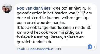 Er is wat mij betreft geen discussie tussen voor en tegen. Als je van je 35ste tot 75ste geniet van hardlopen, kun je prima 2 x 100 prikken om een keer volgens Stans van der Poel te trainen en een keer de lange duurlopen uit te proberen. Dan weet je zelf wat bij je past.