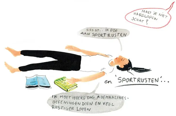 Daar ben ik inderdaad fan van: rustig lopen en ademhalingsoefeningen doen. Dus daar blog ik over, daar praat ik over en ik schrijf er boeken over vol.