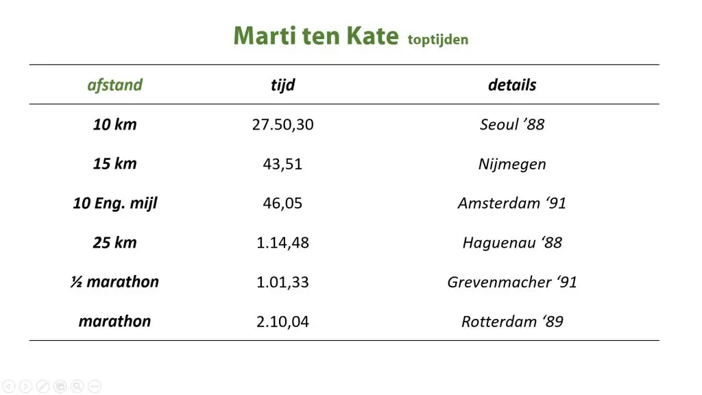 Nog steeds behoort Ten Kate tot de snelste Nederlanders op de 10 km én de marathon.