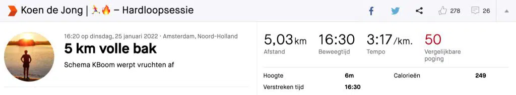 Ik vind het heel knap dat je dag en datum prikt en daar naar toe leeft en traint. Ga ervoor Koen en hopelijk trigger je mij om aan de bak te gaan als je straks jouw prestatie upload naar De Eerlijke Strijd. 😄