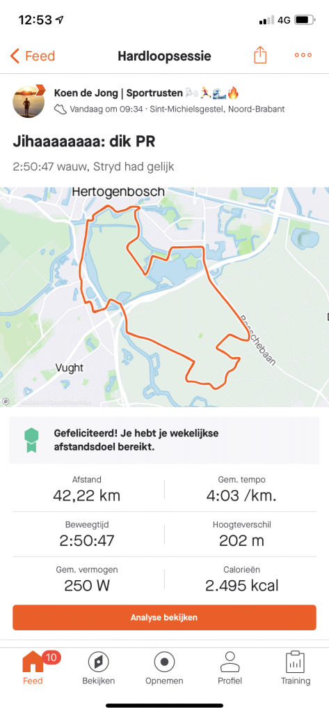 Bizar dat Stryd vooraf precies wist dat ik 250 watt kon lopen en dat daar zo’n snelle tijd uitkomt.