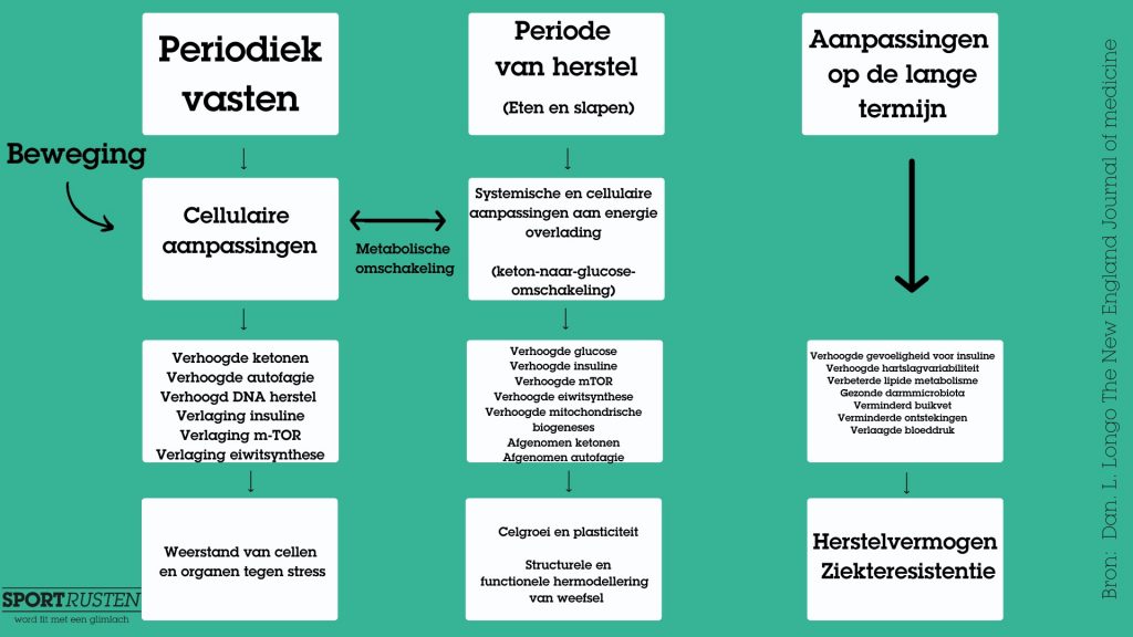 Het onderzoek dat hier nader wordt bekeken en elders uitgebreid wordt besproken,11, 12 laat zien dat de meeste al dan niet alle orgaansystemen op een manier reageren op periodiek vasten waardoor het organisme de uitdaging kan verdragen of overwinnen en vervolgens de homeostase kan herstellen.