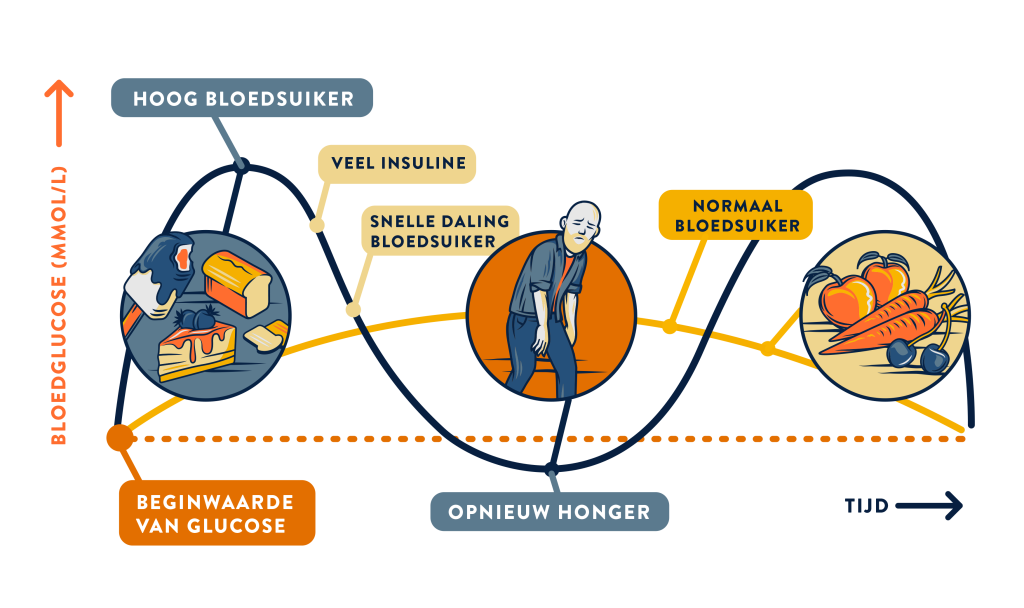Dus na je ontbijt eet je een uur later een gevulde koek, en anderhalf uur na de gevulde koek merk je op, hoeveel energie je hebt.