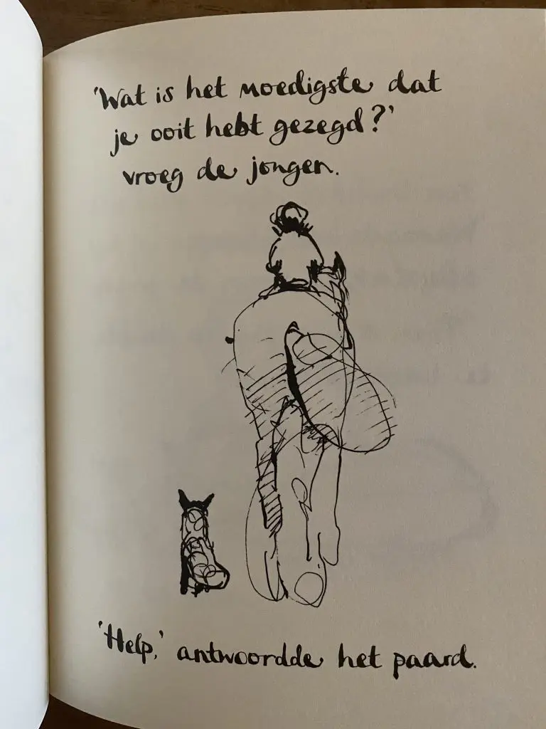 Maar goed. Ik sloeg dus het fijne boek van Mackesy open na dit gesprek met Klaas.